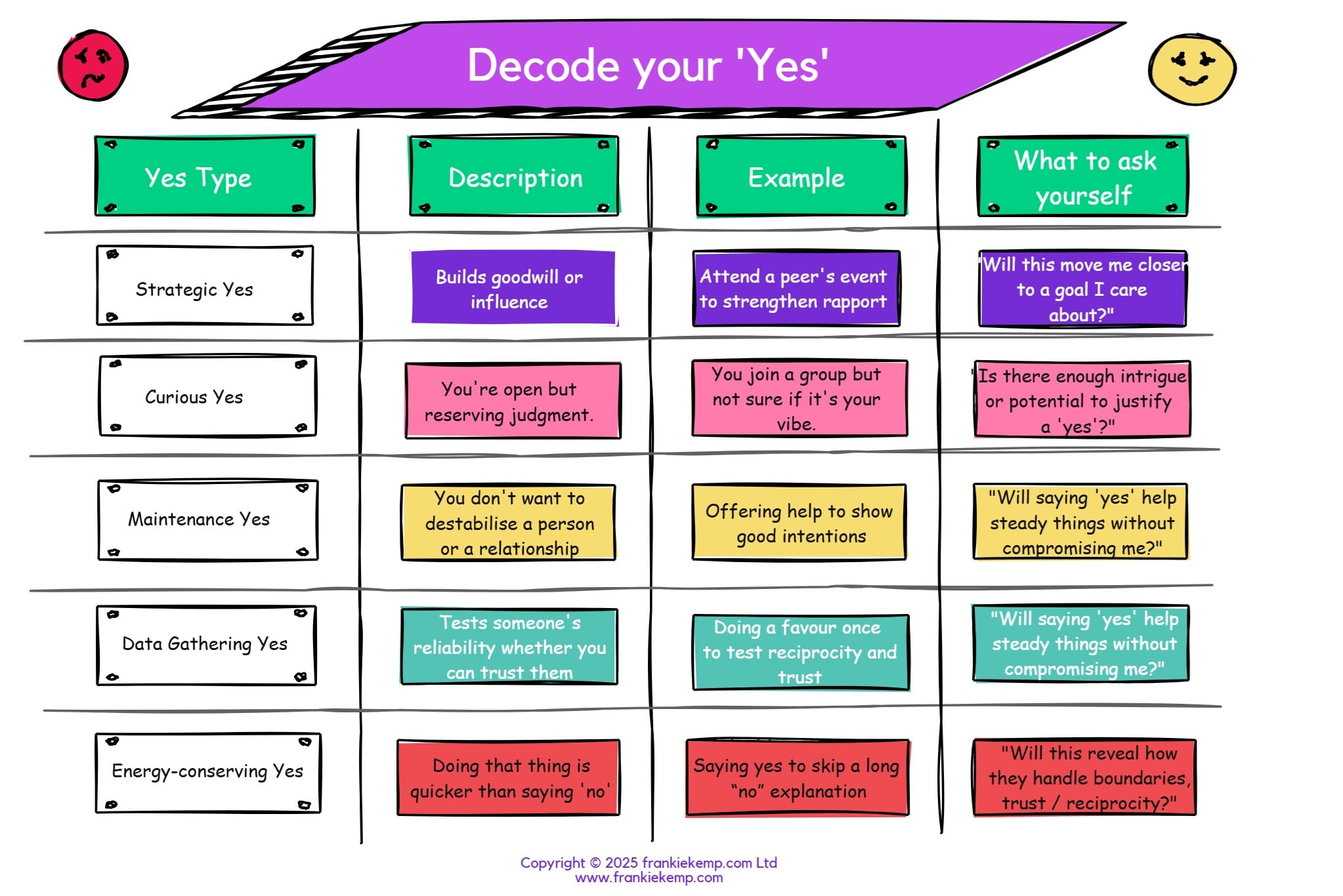 These aren’t people-pleasing ‘yeses’. They’re strategic, emotionally intelligent ones. And they come with reasons that are valid, even if they’re not always comfortable.